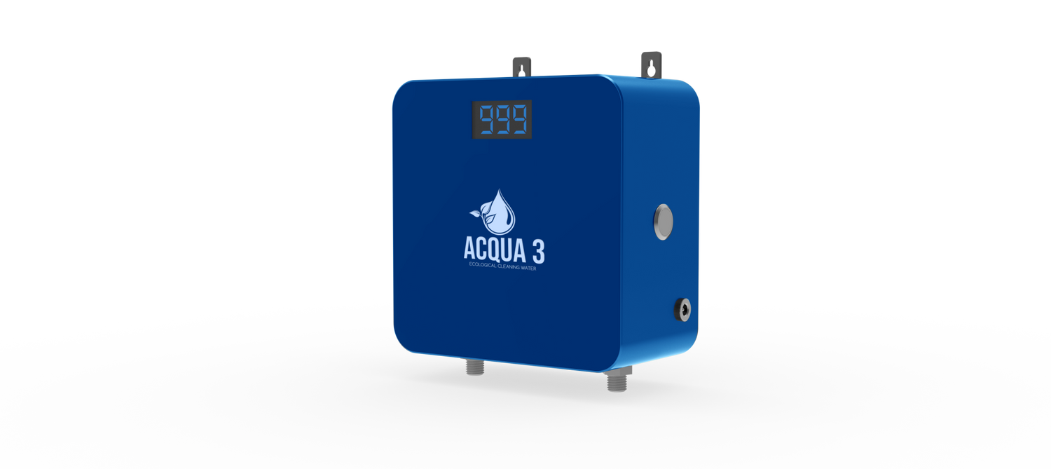 Les appareils Acqua3 utilisent l’eau du robinet et l’électricité pour produire de l’eau ozonée, une solution de nettoyage qui élimine la saleté, les taches et la graisse.